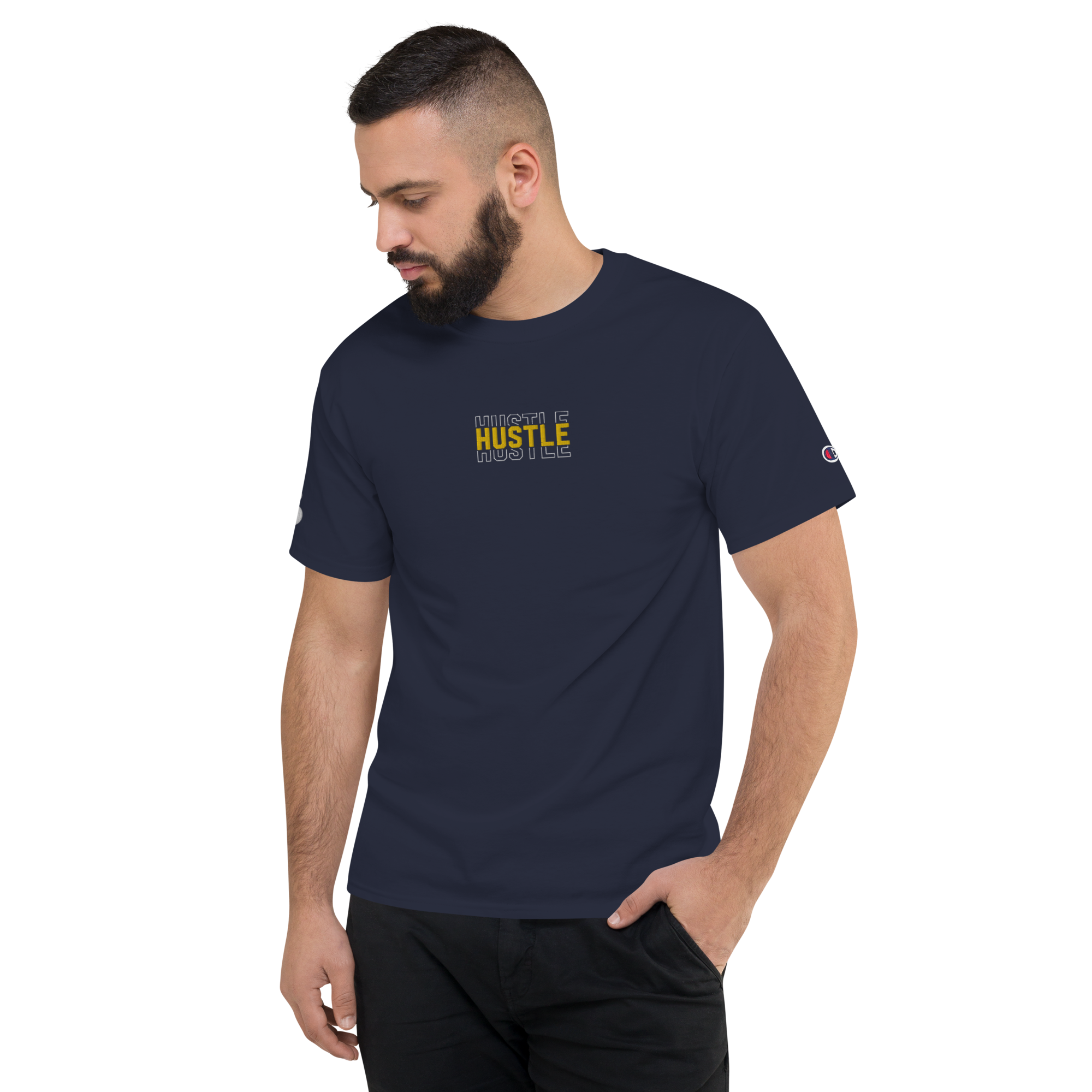 • Champion “C” logo patch on the left sleeve